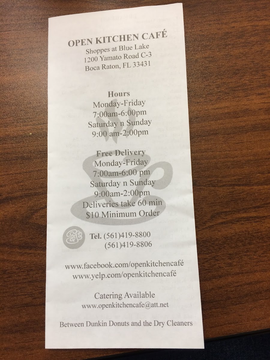 Open Kitchen Cafe Menu